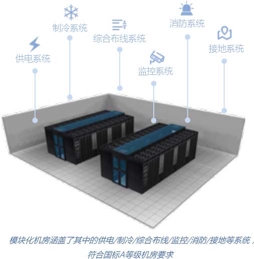 模塊化機房是一套完整的機房解決方案。它由不同的功能部件組成一個完整的機房模塊,集機架、配電、制冷、監控、管理與維護、安全等系統于一體,實現 了供電、制冷和管理組件的無縫集成,并使其智能、高效的運行。
